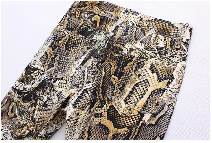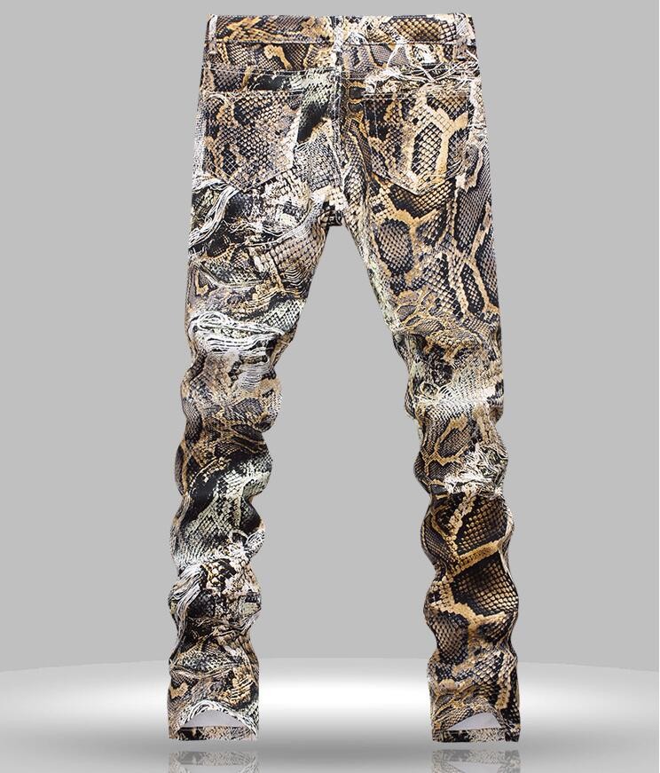Autumn slim Serpentine printing mens jeans 1 denim trousers man straight personalized luxury brand fashion elastic pants